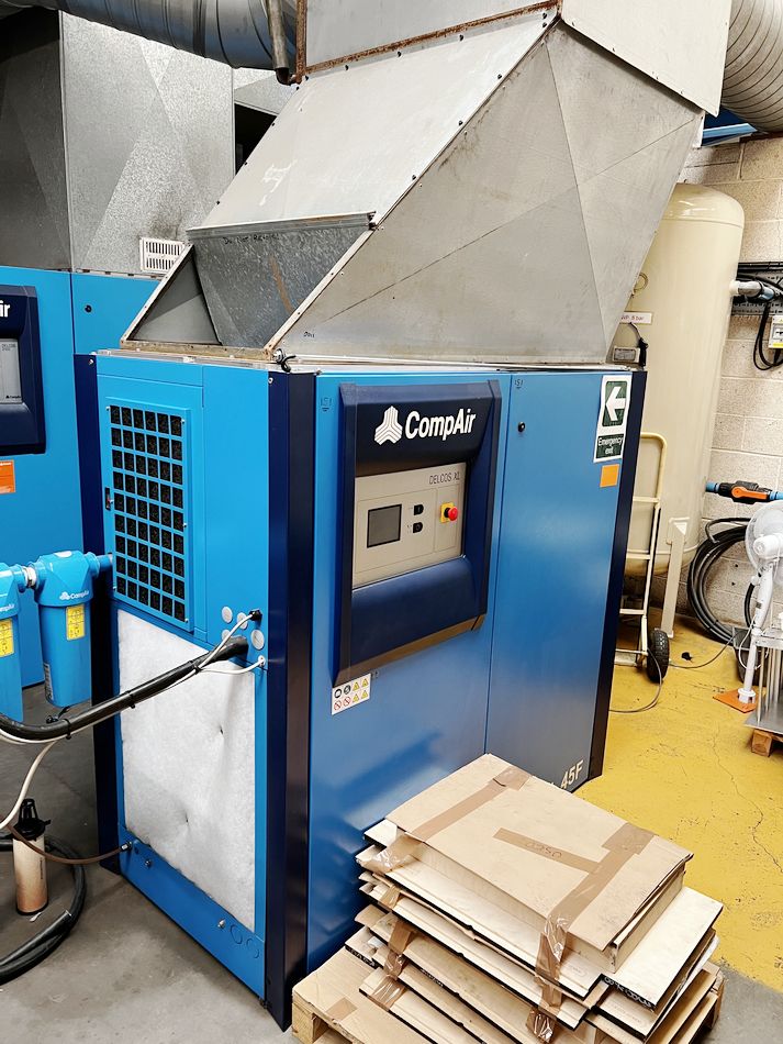 "Compair model L45F.7.5A packaged screw compressor; serial no. CD10012443001; year 2013; 7.5 bar, 8m3 min together with 2 Compair 0.2 filters, believed issue with blocked oil cooler (excluding pipework), buyer to cap off extraction through wall"