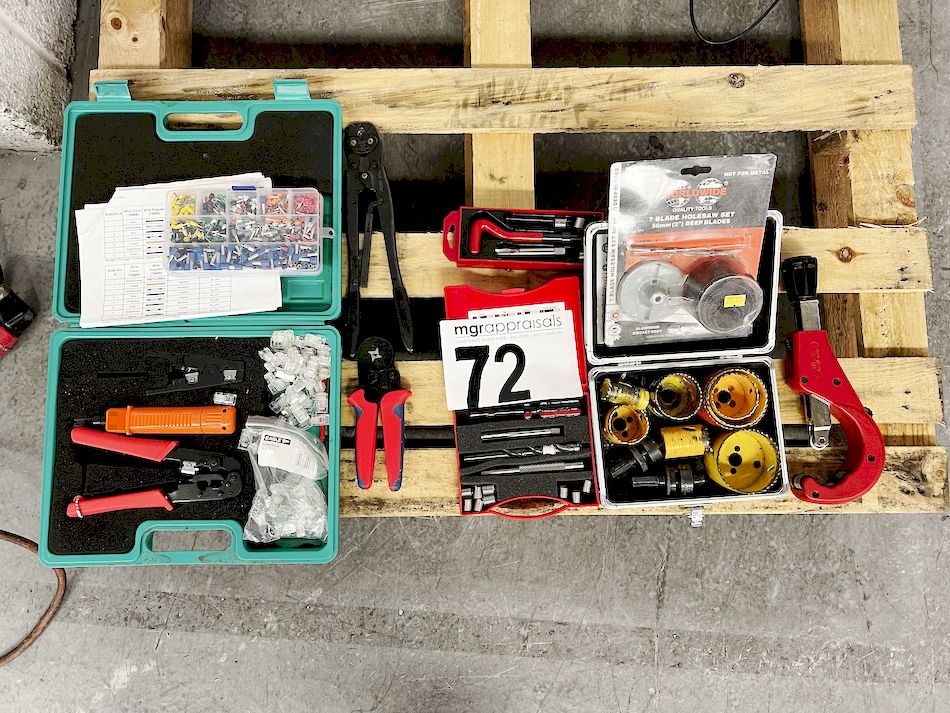 Crimping tool for network cable with wire thread repair kit and hole saws