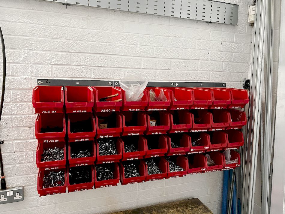 "36 Linbin rack with contents to include M5, M6 and M8 bolts"