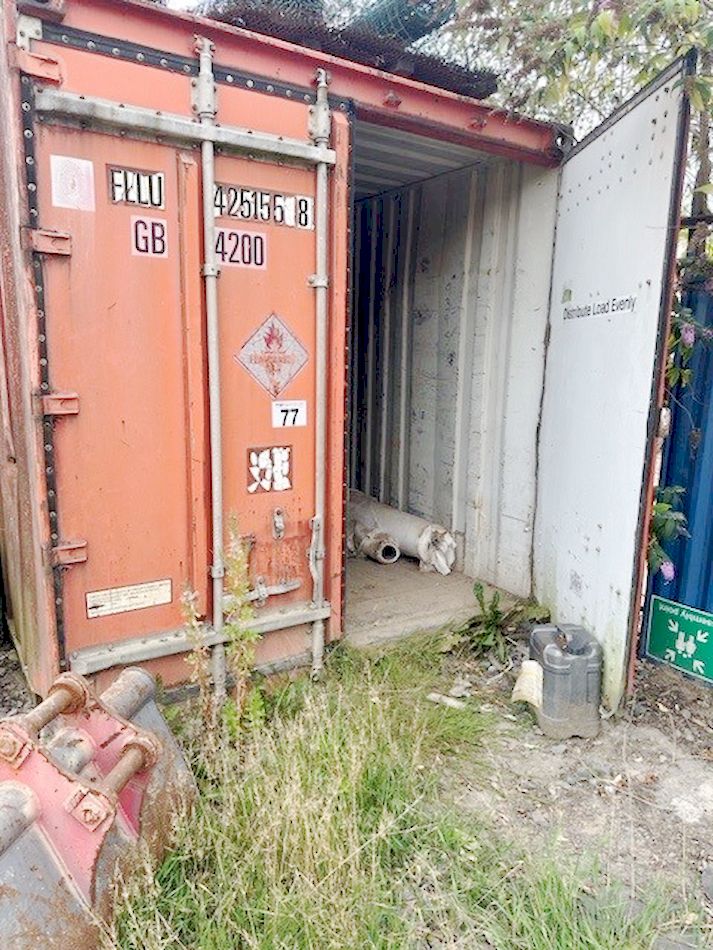 Steel shipping container 40ft with contents including rubber matting