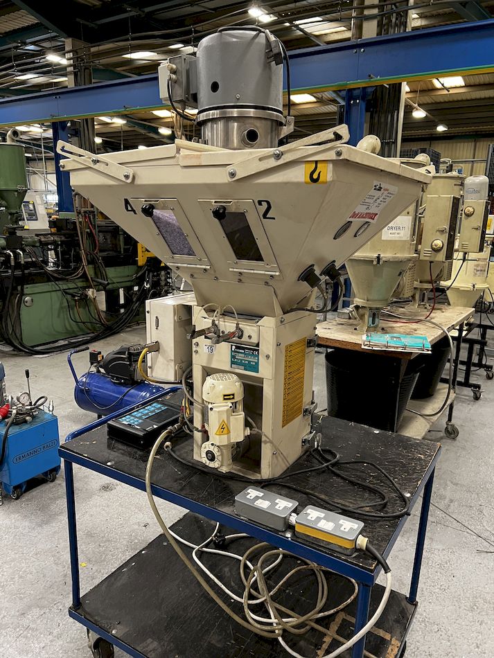 Piovan model MDW50/40 4 section material blender on trolley